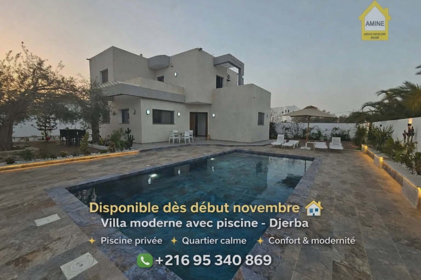 Location annuelle – Villa meublée S+4 avec piscine et garage à Midoun
