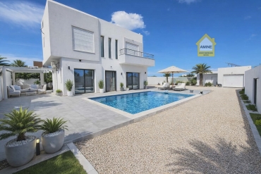 • Située dans un quartier calme et agréable à Midoun, cette belle villa S+4 entièrement meublée offre un cadre de vie idéal, que ce soit pour y vivre ou pour investir.