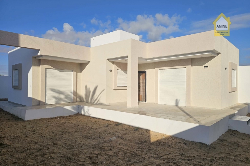 - Découvrez cette charmante villa neuve située dans un quartier calme à seulement 2 km du centre-ville de Houmt Souk.