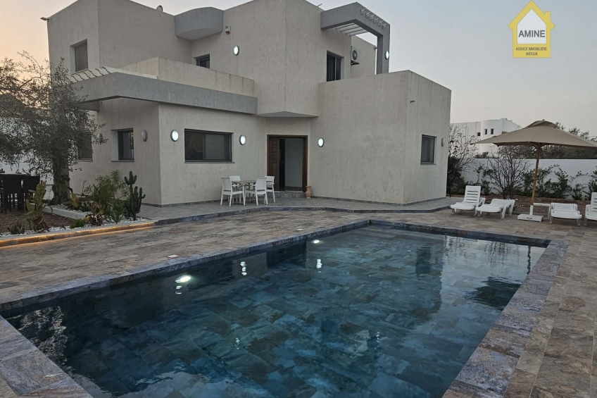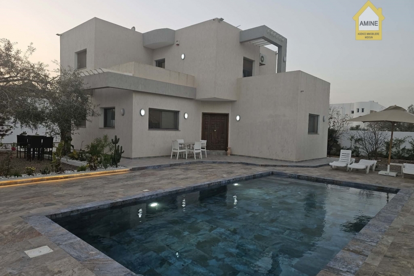 Location annuelle – Villa meublée S+4 avec piscine et garage à Midoun