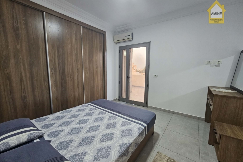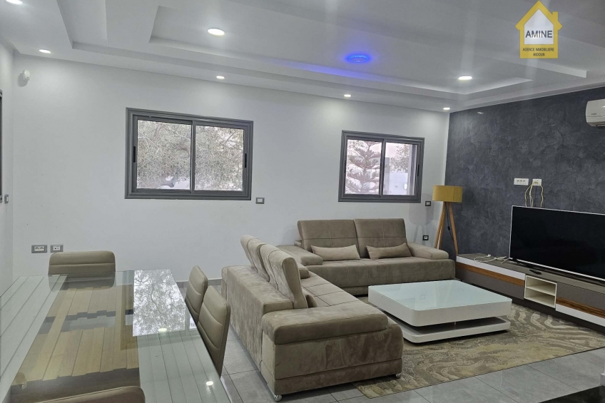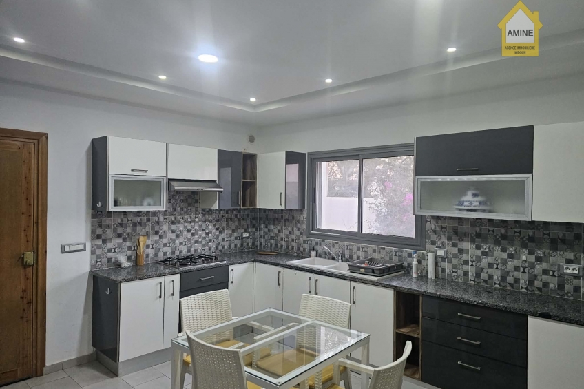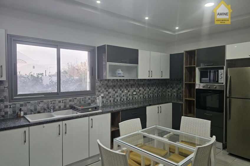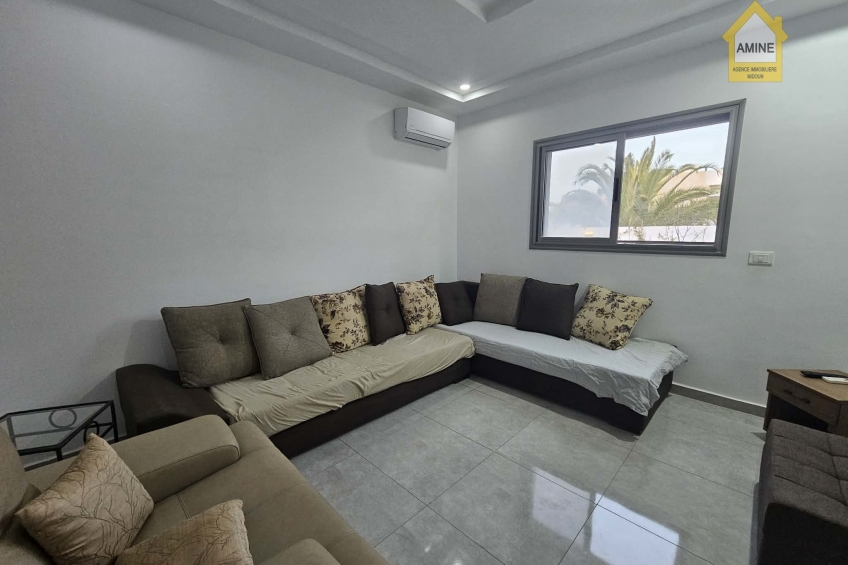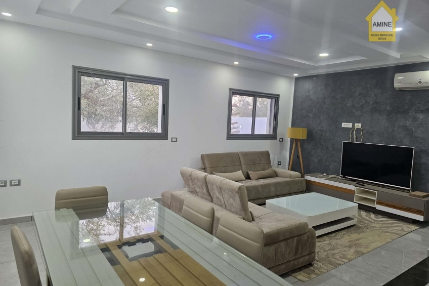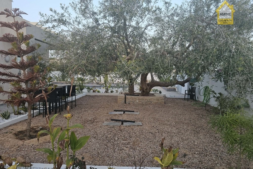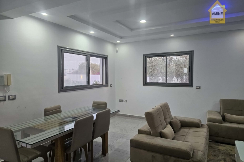Nous vous proposons à la location annuelle cette superbe villa meublée S+4, située dans un quartier résidentiel calme et recherché de Midoun, offrant confort, modernité et intimité.