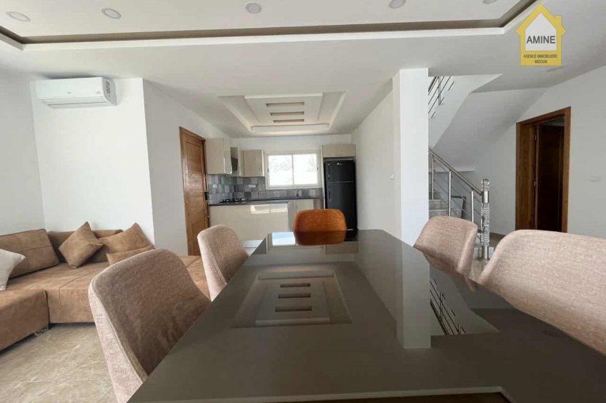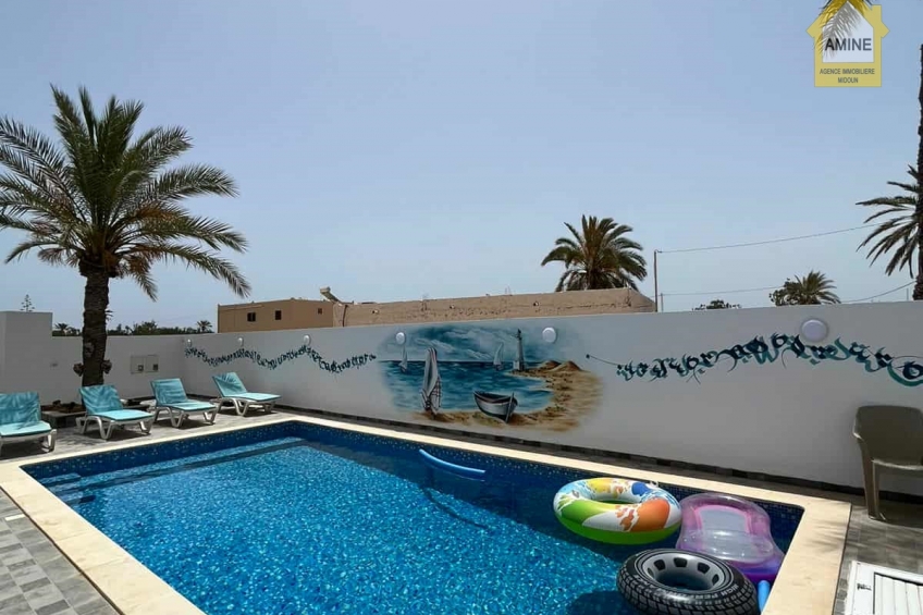 - L’Agence Immobilière Amine vous propose une magnifique villa contemporaine, offrant un cadre de vie calme, moderne et parfaitement situé à quelques pas de la zone touristique d’Aghir et proche de toutes les commodités.