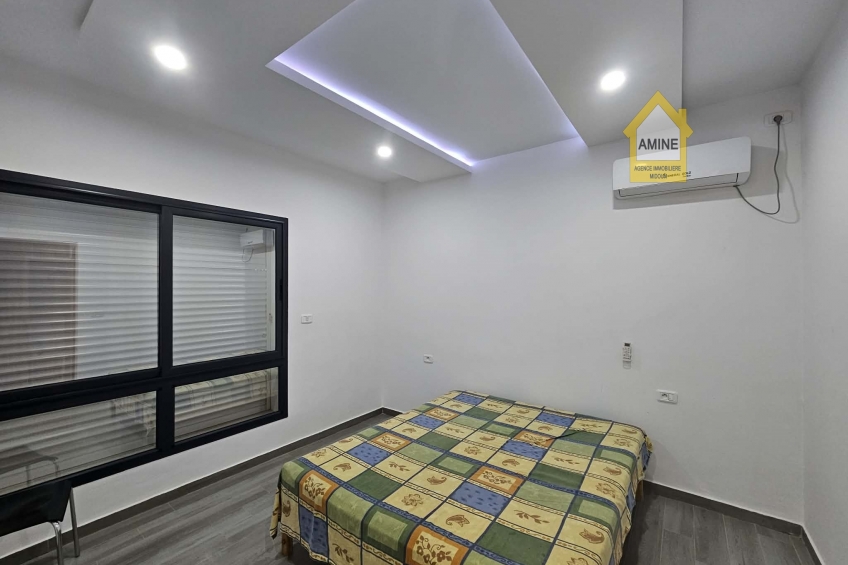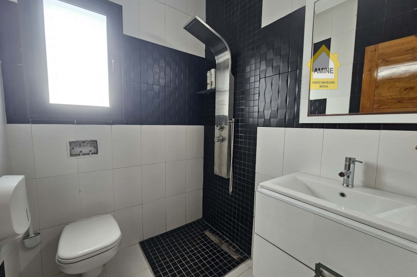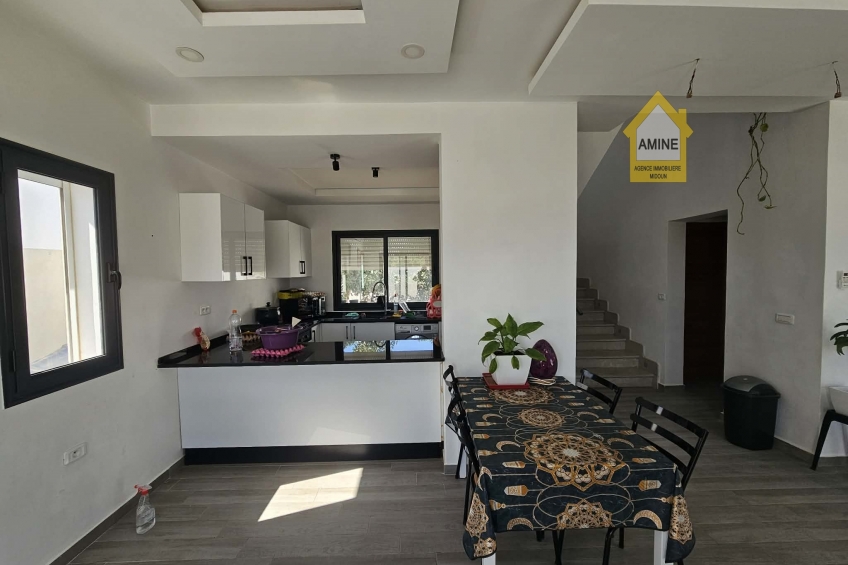 - Découvrez cette magnifique villa moderne entièrement meublée, idéalement située à Midoun, dans un quartier calme et recherché, à seulement 4 km de la plage Seguia et 3 km du centre-ville.