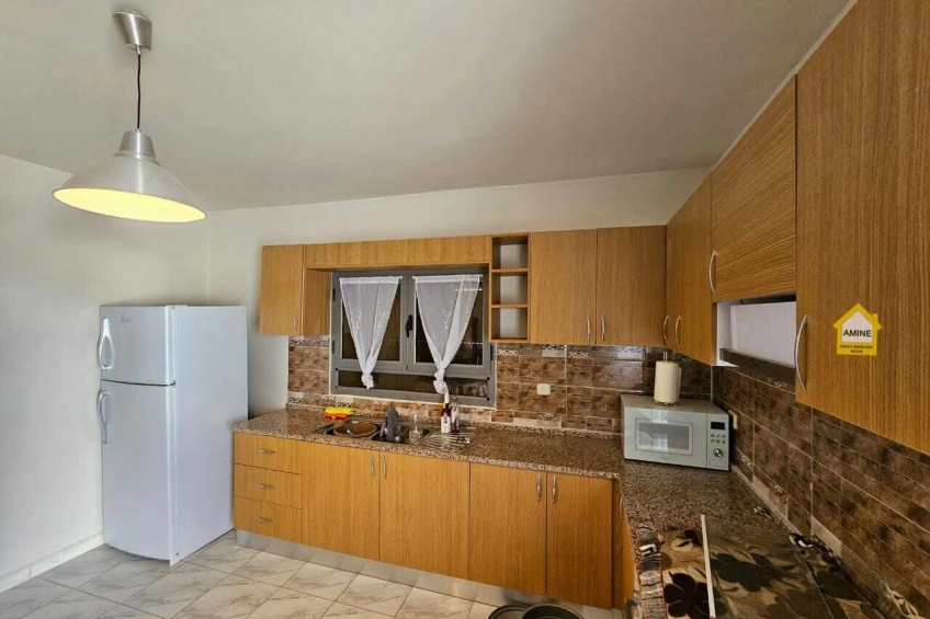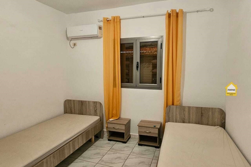 - Elle se compose de : Un grand salon lumineux Une cuisine moderne entièrement équipée Trois chambres à coucher confortables Deux salles de bains Un joli jardin arboré Un abri pour voiture Loyer : 1 100 DT / mois (contrat annuel) Cette villa allie confort, emplacement et praticité — parfaite pour une famille à la recherche d’un cadre paisible tout en restant proche du centre de Midoun.