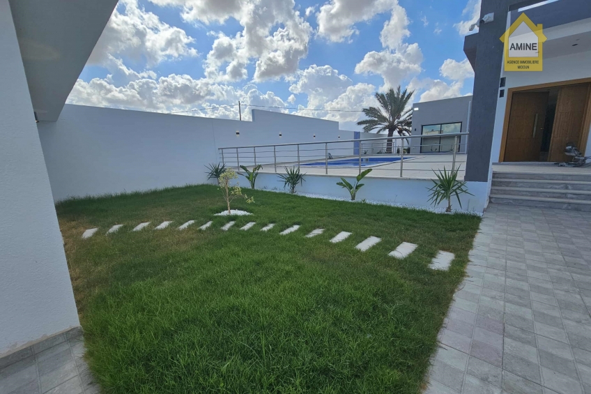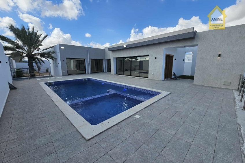 - À vendre, une magnifique villa neuve et contemporaine située dans un quartier calme et résidentiel de Midoun Djerba, à proximité de toutes les commodités.
