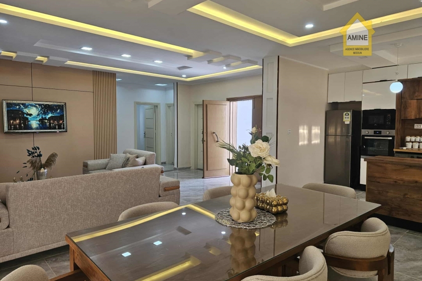 • Découvrez cette superbe villa contemporaine de plain-pied située dans un quartier calme et recherché de Tezdaine – Midoun, à seulement quelques minutes des plus belles plages de Djerba.